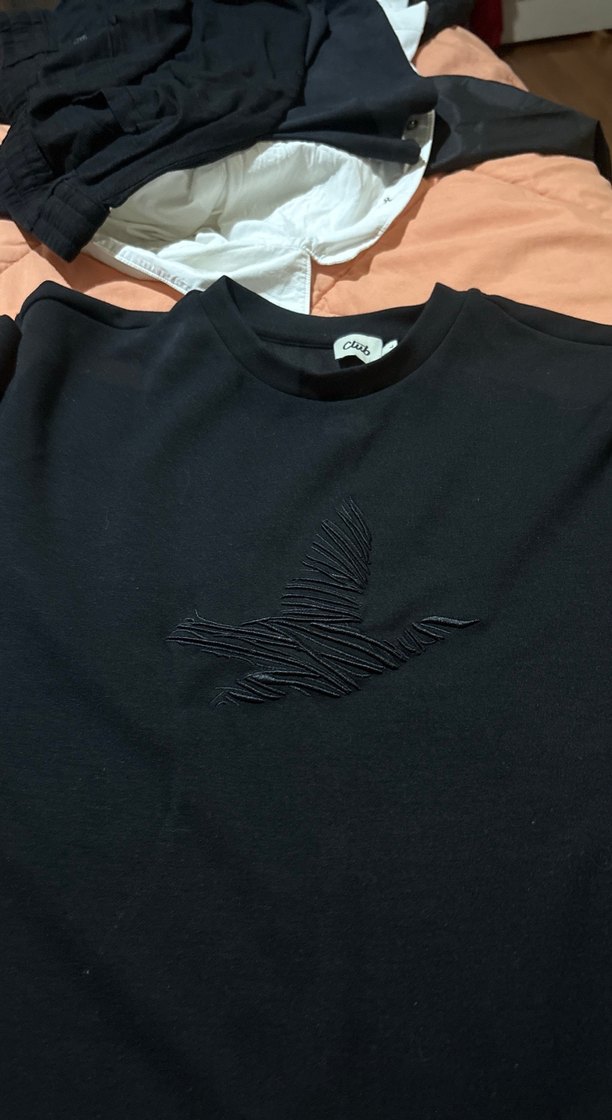 Pamuk kumaştan, yuvarlak yakalı ve uzun kollu siyah hamile tişörtü. Nakış detayları ve rahat bol kesimiyle günlük kullanıma uygun.