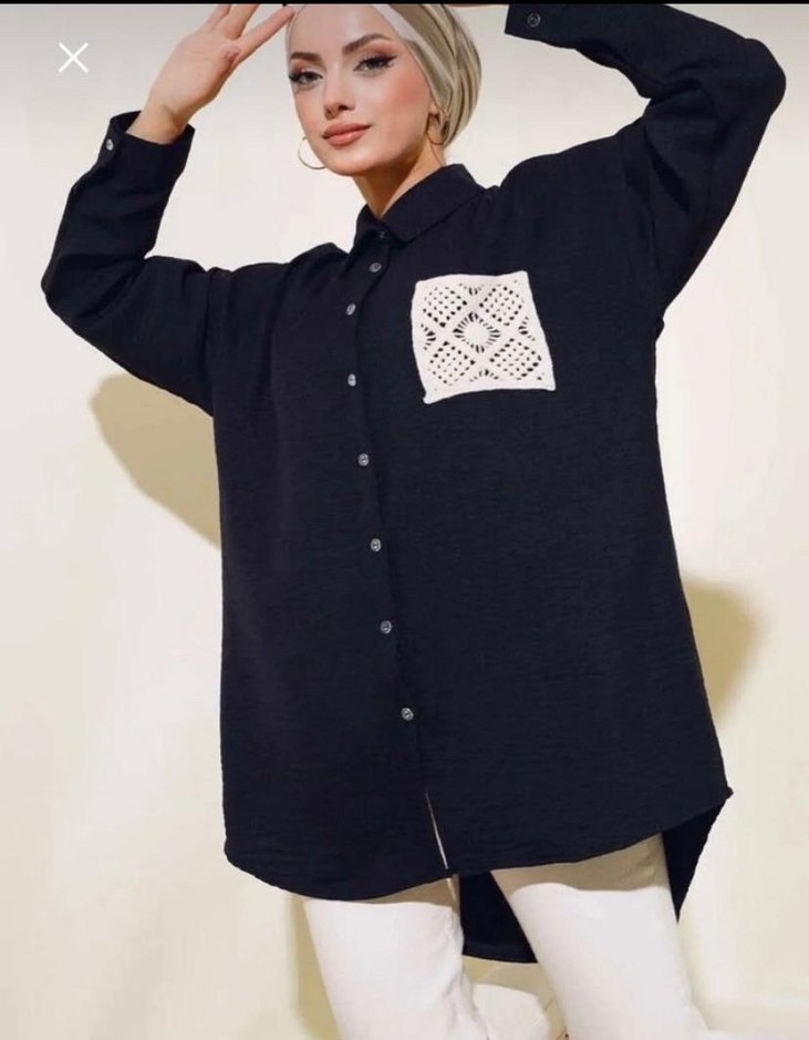 Pamuklu, uzun kollu, siyah gömlek. Nakışlı cep ve düğmeli, salaş kesimle günlük rahat sokak stili için uygundur. S&M - L&XL mevcuttur