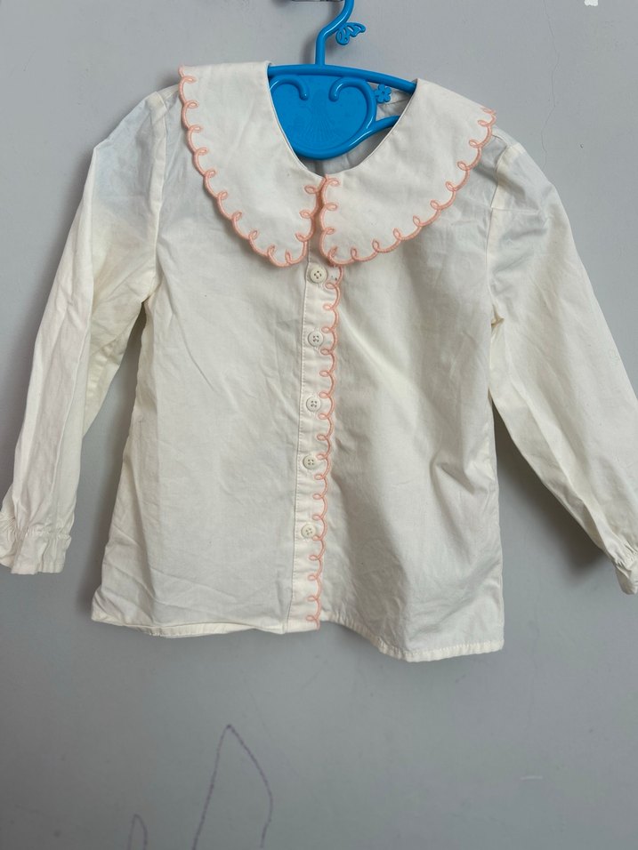 Etiketi yok kullanılmadı Pamuklu, uzun kollu, düğmeli, yakası nakışlı ve fırfırlı kız gömleği, salaş kesim ve sokak stili için uygun.