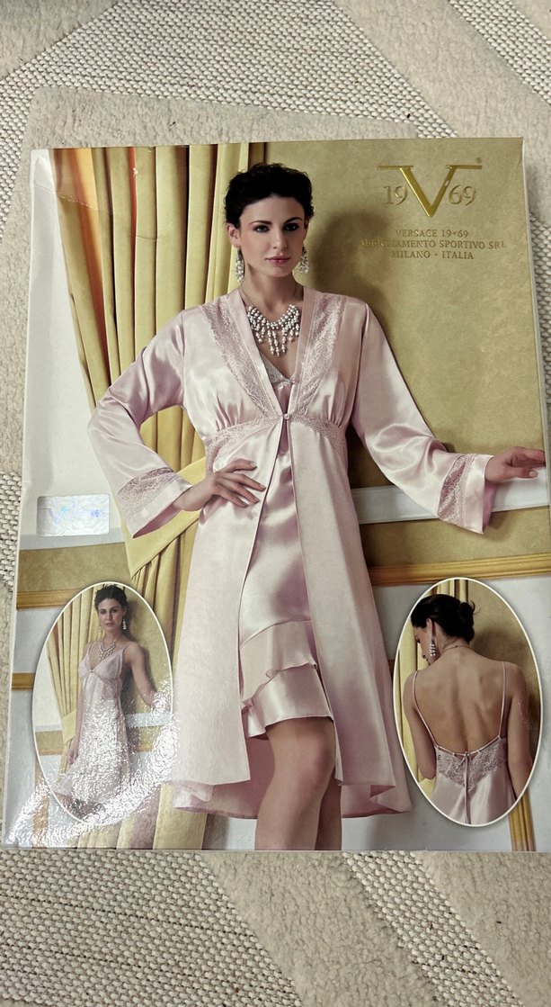 Nakış işlemeli, askılı ve uzun bej kadın gecelik takımı, bol kesim ve klasik şıklık sunar. valonlu etekli gül kurusu renkte