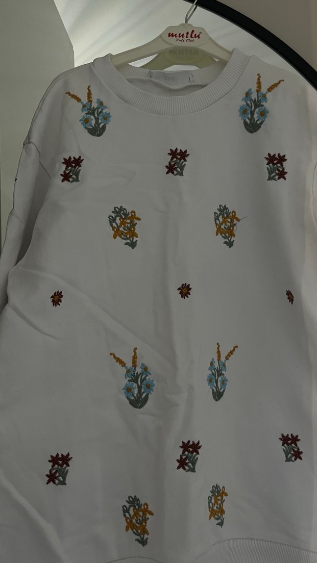 Nakış İşlemeli Beyaz Kadın kazak