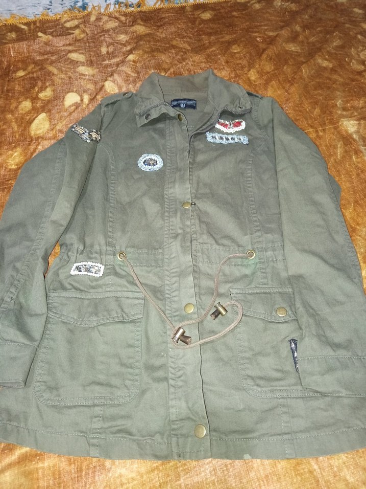 Düğmeli, nakış işlemeli gri midi ceket. Notlu yaka ve uzun kollu, rahat kesimli dış mekan kullanımı için uygun.