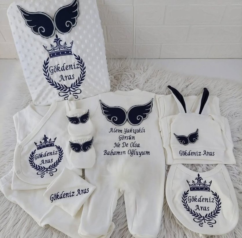 nakış işlemeli isimli hastane çıkışseti, isimli bebek tulum.