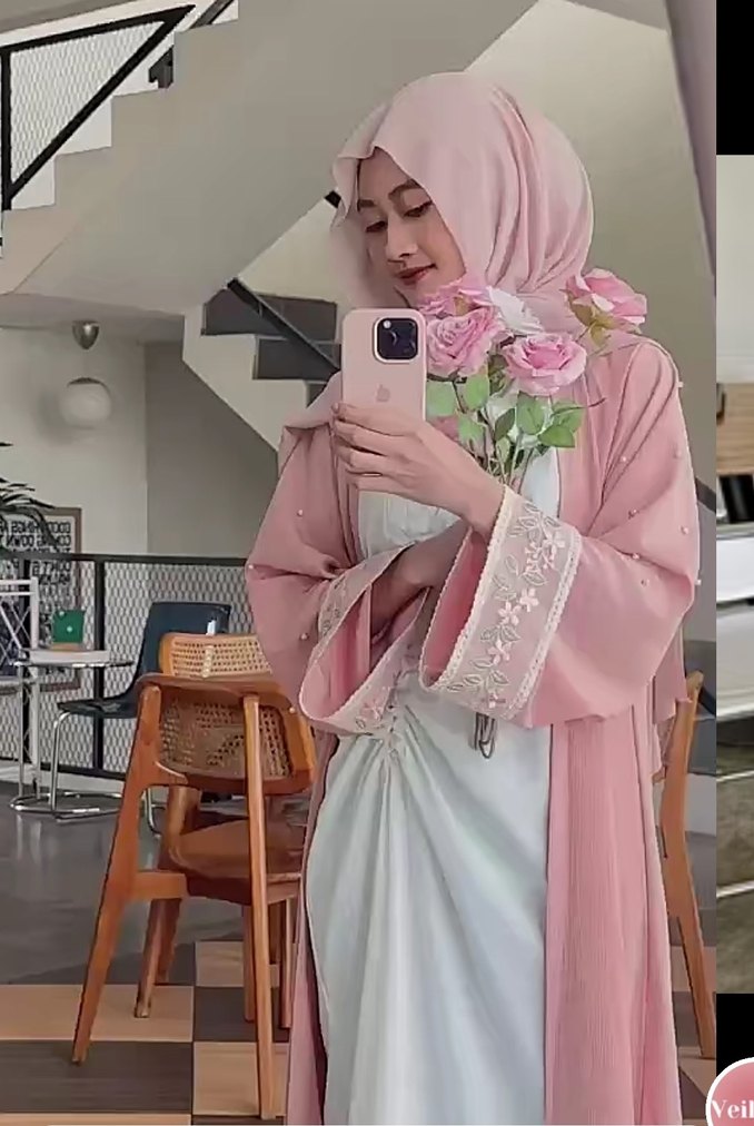 Nakış İşlemeli Pembe Bohem Uzun Kadın abaya