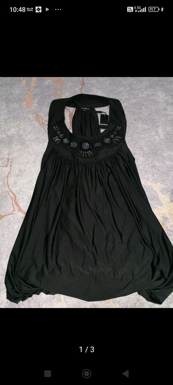 Siyah, yüksek yakalı ve kolsuz olan bu bluz, nakış işlemeli ve drapeli bol kesimlidir. Gotik ve bohem tarz partiler için uygundur.