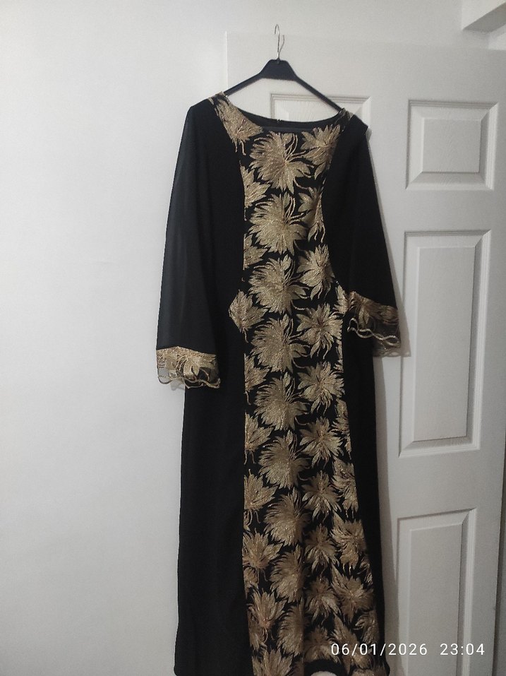 Nakış İşlemeli Siyah Vintage Uzun Elbise