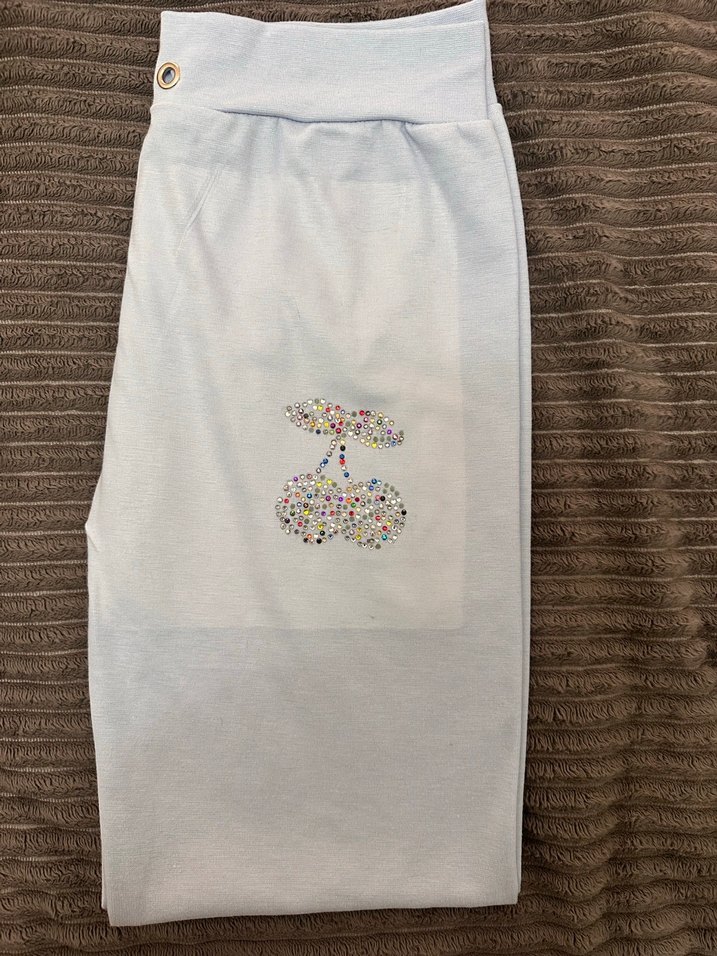 Pamuklu, uzun boy ve payet işlemeli kiraz deseniyle rahat kullanım sunar.