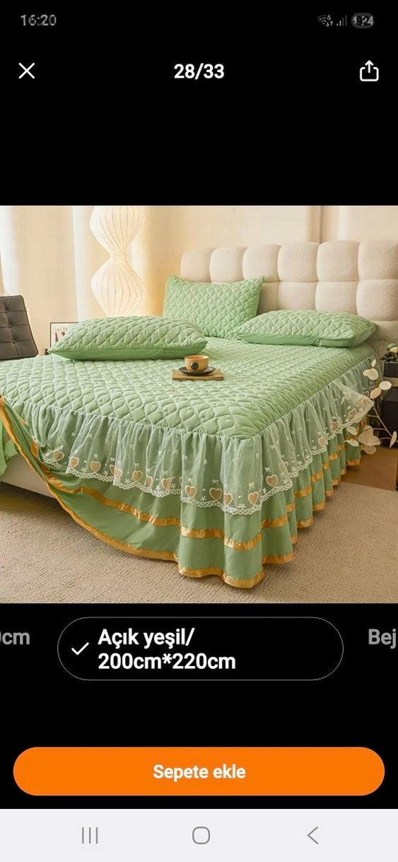 Nakışlı detaylara sahip pastel açık yeşil yatak örtüsü, 200x220 cm ölçülerindedir. Kalp desenli fırfırlı kenarları bulunur.Yatakda duruşu o kadar güzelki ️Cehizliyinize alın kizlar...
