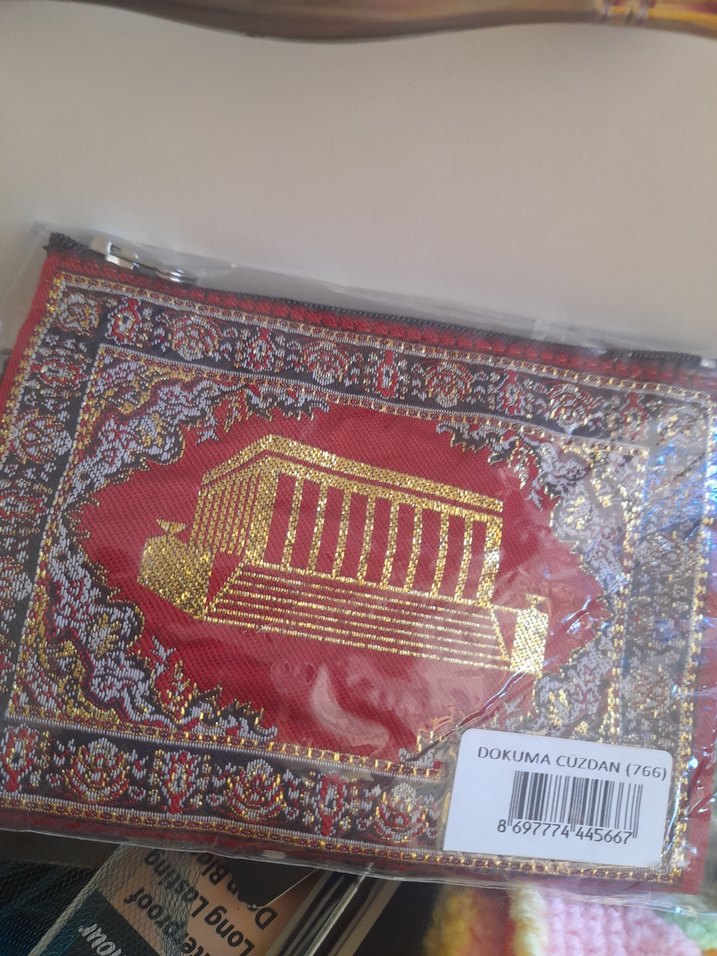 Nakışlı tekstil kumaştan, parlak altın desenli ve fermuarlı kadın cüzdanı, günlük kullanıma uygun bohem tarzda. ✨
