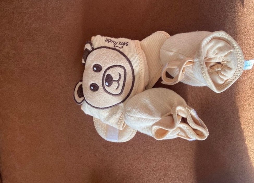 Nakışlı Ayıcık Desenli Bebek Eldiveni