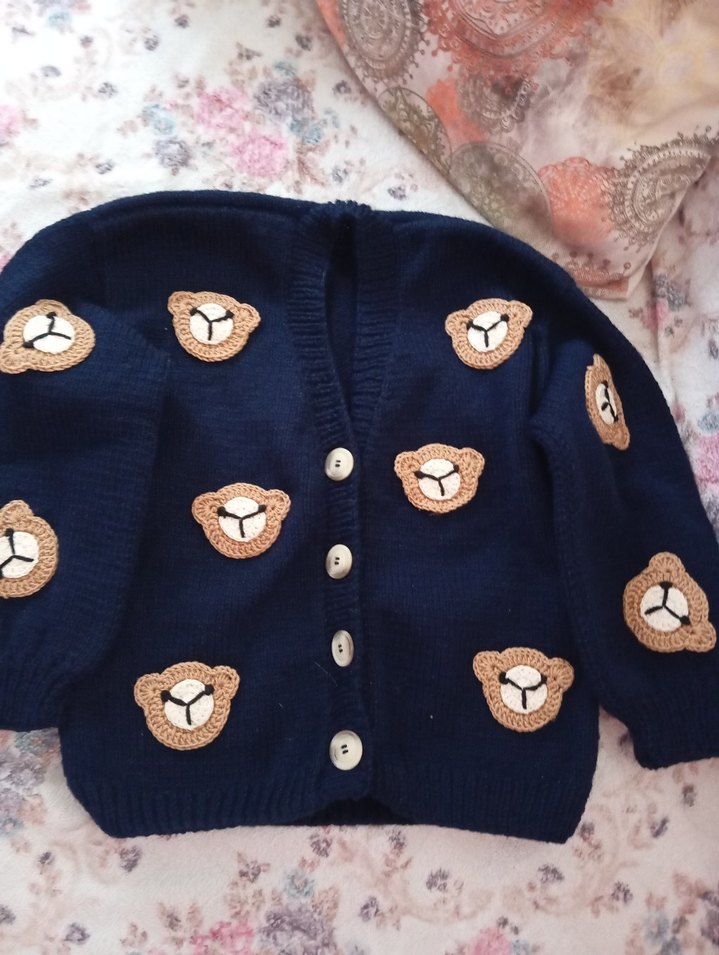 Nakışlı Ayıcık Desenli Erkek Çocuk Hırka kendim örüyorum