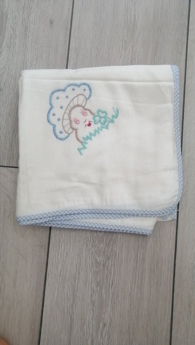 Yumuşak ve rahat beyaz çocuk battaniyesi, pastel tonlarda nakışlı desenle. Küçükleri sıcak tutmak için uygundur.
