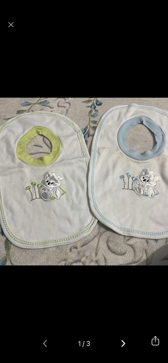 Beyaz bebek önlükleri, nakışlı ayıcık ve bitki desenli, gri ve açık yeşil yaka açıklıklarıyla rahat ve kullanışlıdır. Ikısı beraberdır sıkıntıları yoktur