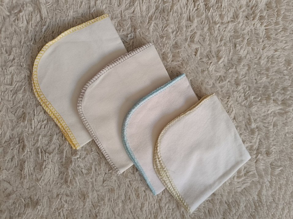 Yumuşak beyaz kumaştan, pastel renklerde nakışlı kenar detaylı bebek önlükleri seti. Her önlük farklı pastel tonlarında şık nakışlara sahip.