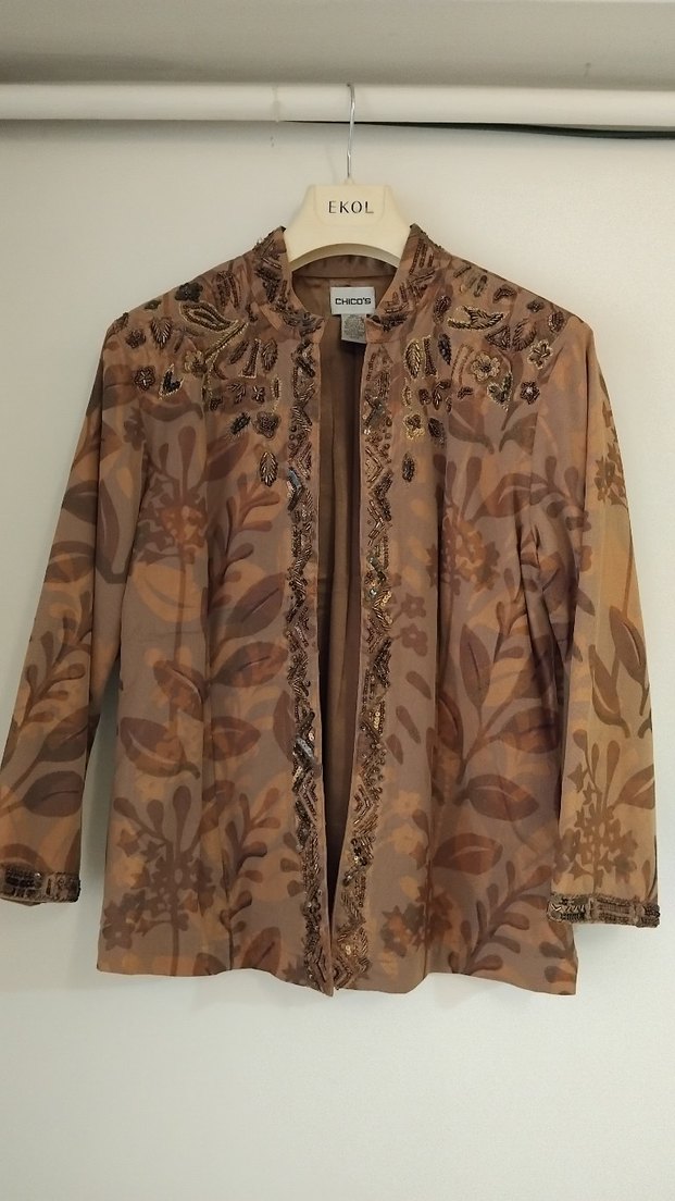 ithal bir üründür,hiç bir kusuru yoktur,kol yaka ve ön kısmı boncuk işlemelidir,sayılı giyilmiştir.