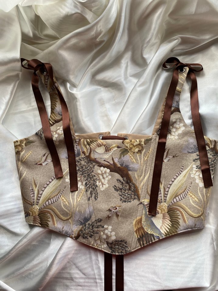 Nakışlı desenlere ve tokalı detaylara sahip, bohem tarzda bej renkli, askılı ve straplez kesim büstiyer. Günlük kullanıma uygundur.