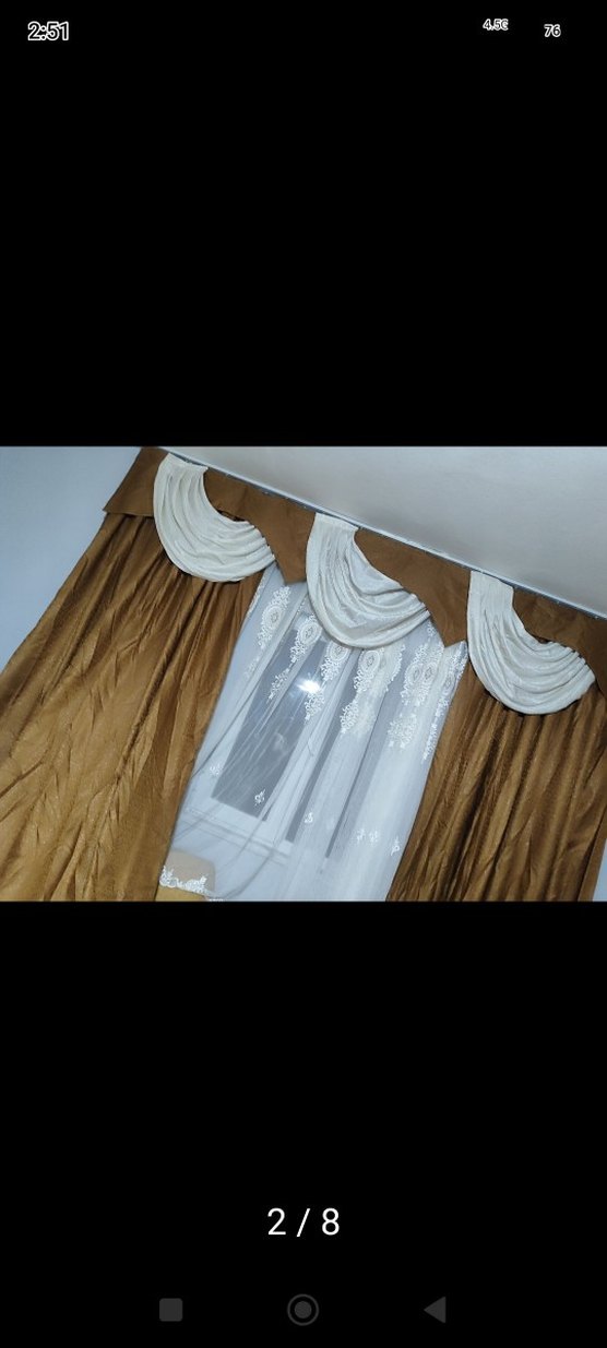Nakışlı desenlere sahip, parlak görünümlü bej renkli klasik tarzda fon perde.