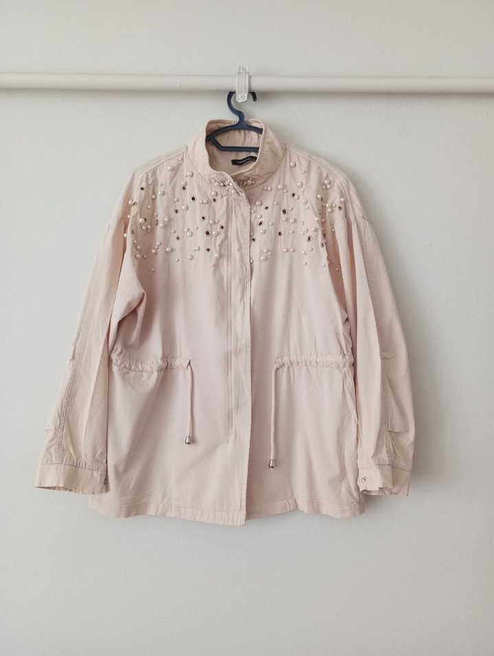 Bej keten kumaştan, uzun kollu, düğmeli ve nakışlı detaylara sahip mevsimlik kadın ceket. Salaş kesim, çıtçıtlı yakası ve midi boy ile günlük kullanıma uygundur. Boy: 63 cm İki kol arası : 61 cm