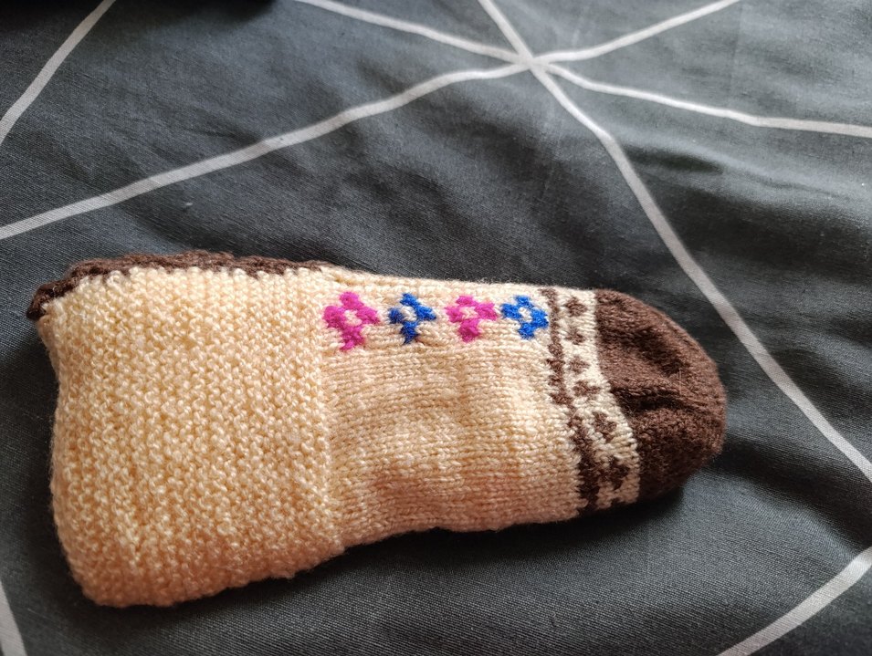 Nakışlı renkli çiçek detayları ve kahverengi uç kısmı olan açık patik