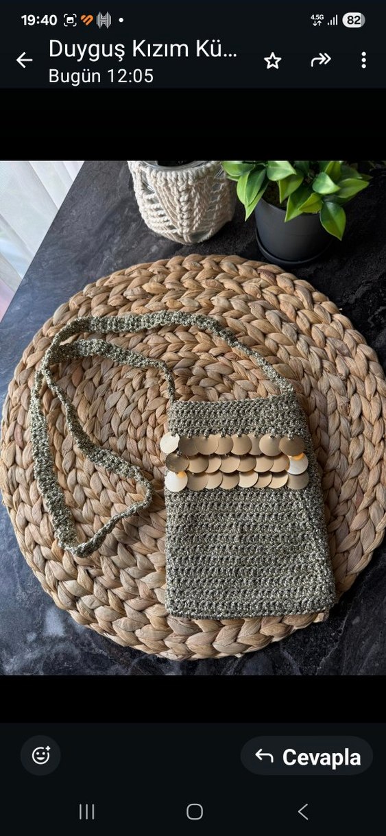 Bej renkte, nakışlı örgü kadın çapraz çanta. Uzun askılı ve günlük kullanıma uygun bohem tarzda.