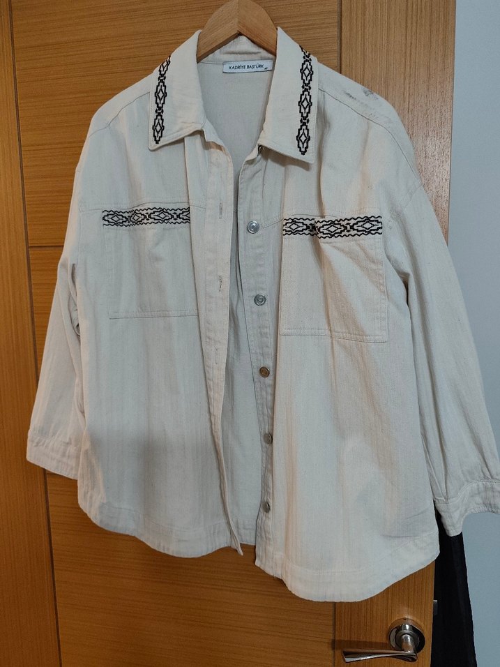 Nakışlı Bej Pamuklu Uzun Kollu Gömlek,ceket