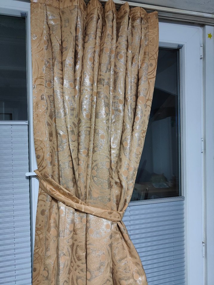 Nakışlı desenlere ve parlak görünüme sahip klasik tarzda bej fon perde, mekâna zarif bir dokunuş katıyor. deforme yok temizdir en 95 cm boy 245 cmdir 3 lü gönderilicektir