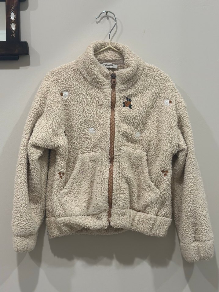 Nakışlı Bej Peluş Kız Ceket