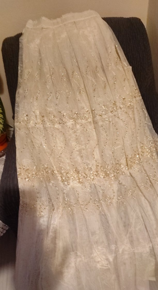 Nakışlı Bej tül perde iki pparca
