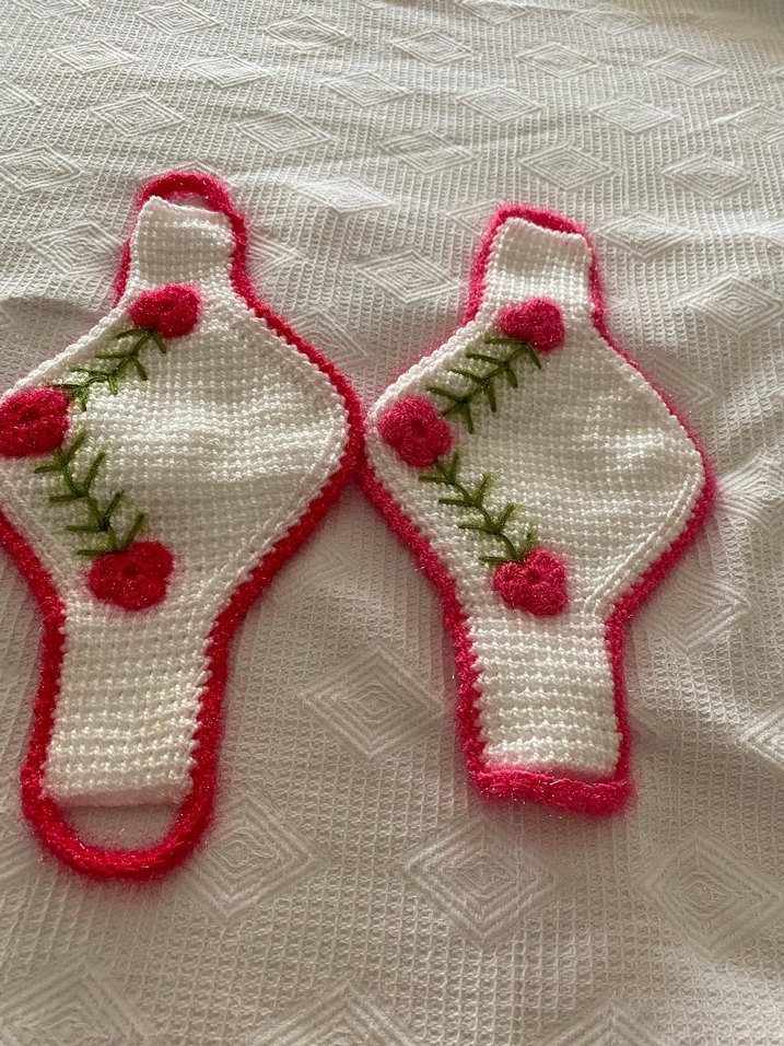 Yumuşak örme kumaştan, nakışlı çiçek desenli ve pembe kenarlıklı beyaz banyo lifi