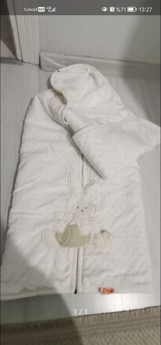 Nakışlı tavşan desenli, yumuşak dokulu beyaz bebek battaniyesi, nazik sıcaklık ve konfor sağlar. fermuarlı kundak oluyor yumuşak kalın bebek battaniyesi