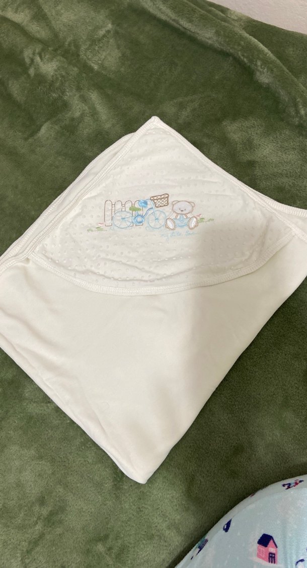 Yumuşak polar kumaştan yapılmış beyaz çocuk battaniyesi, nakışlı desenlerle süslenmiştir ve çocuklara sıcaklık sağlar.