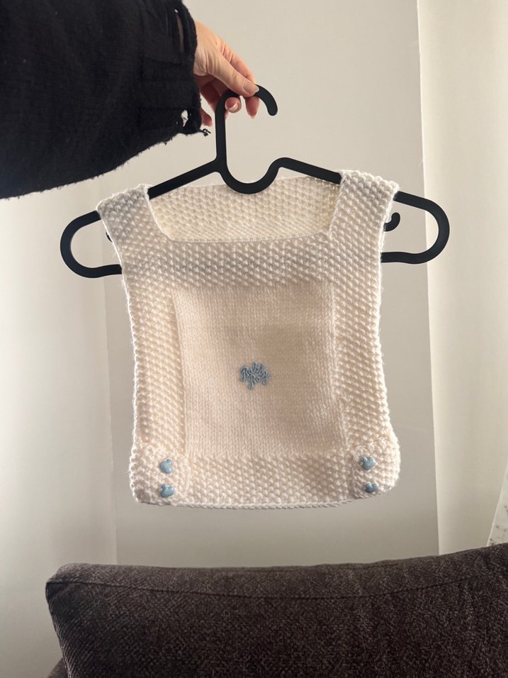 Bu beyaz bebek önlüğü, dokulu kumaş ve nazik mavi nakış detayları ile tasarlanmıştır. Yumuşak ve rahat bir kullanım sunar.