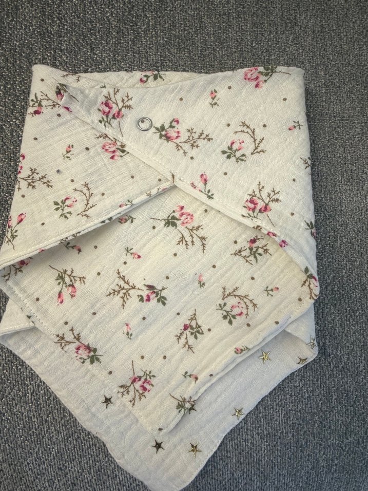 Beyaz bebek önlüğü, zarif nakışlı çiçek ve yıldız desenleriyle bebek kıyafetine hoş bir dokunuş katıyor. Yumuşak müslin kumaşı kullanımda rahatlık sağlar.
