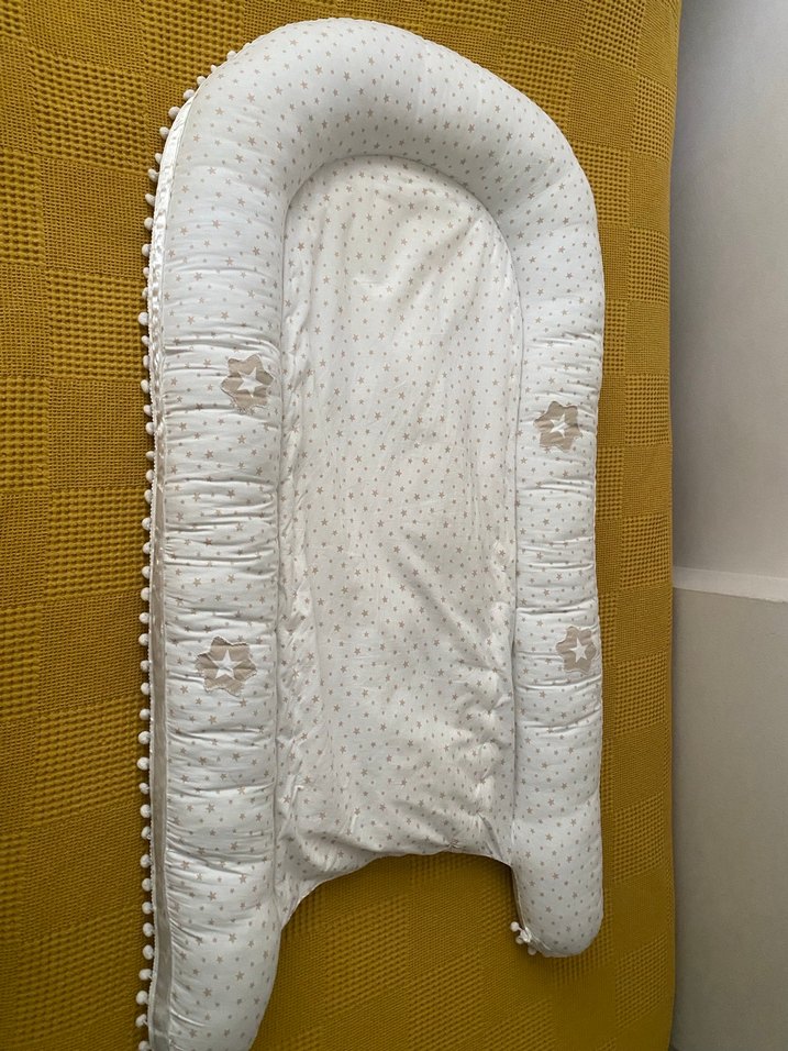 Nakışlı detaylara sahip beyaz bebek uyku yastığı, yumuşak sentetik kumaştan yapılmıştır. Pastel tonlarda ve rahat yuvarlak şekildedir. Temiz ürün hiç bir leke defo yok