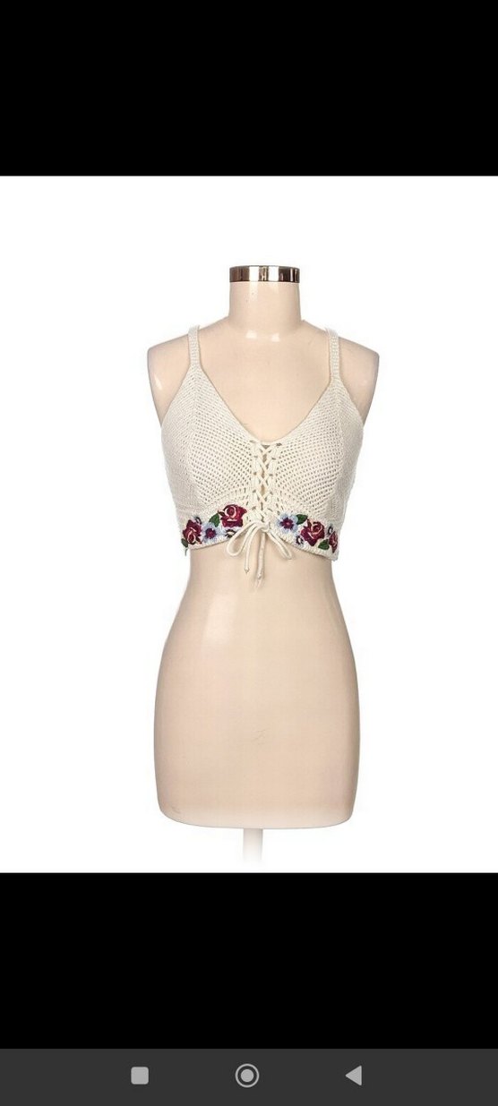 Nakış detaylı, bağcıklı ön kısmı olan beyaz bohem bralet. Normal midi boyda, hafif ve yumuşak kumaşlı.