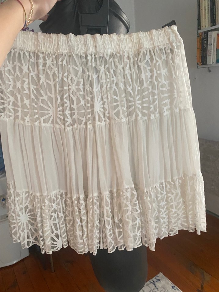 Nakışlı Beyaz Bohem Etek