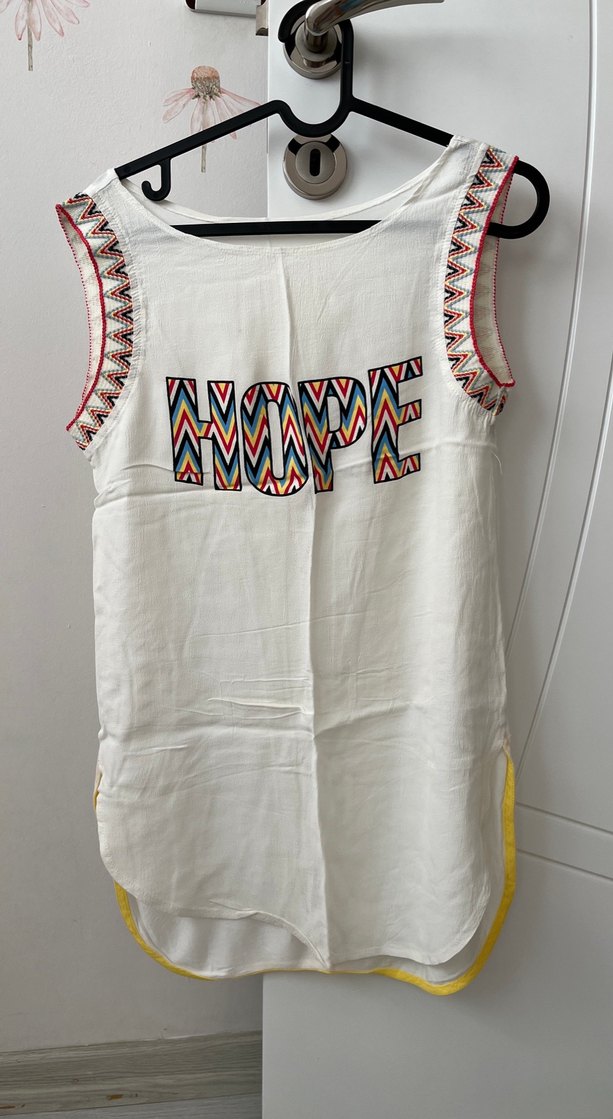 Renkli nakış detaylı, kolsuz beyaz hamile bluzu. V yaka ve bol, drapeli kesimiyle bohem tarzını yansıtır. Midi boyda, rahat bir kullanıma sahip.