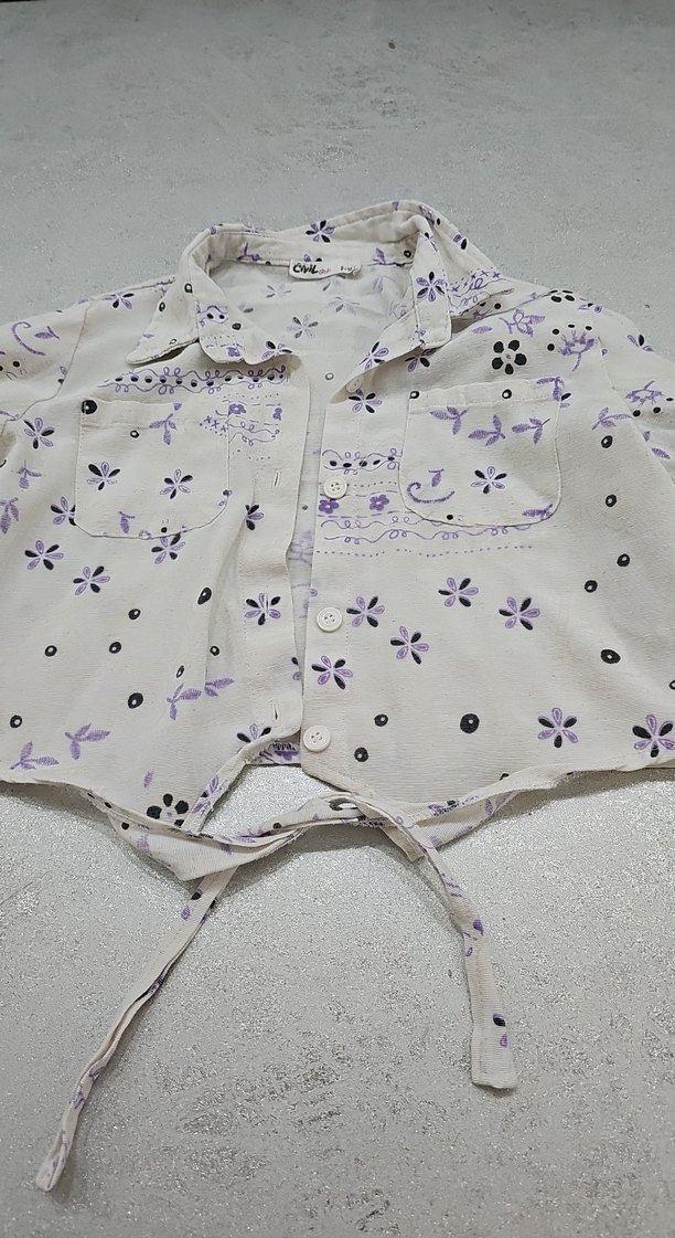 Beyaz renkte, kısa kollu ve yakalı bu kadın gömleği pastel renklerde nakışlı çiçek desenlerine sahiptir. Düğmeli, bol kesim ve kısa boylu, alt kısmında bağlama detayı bulunur.