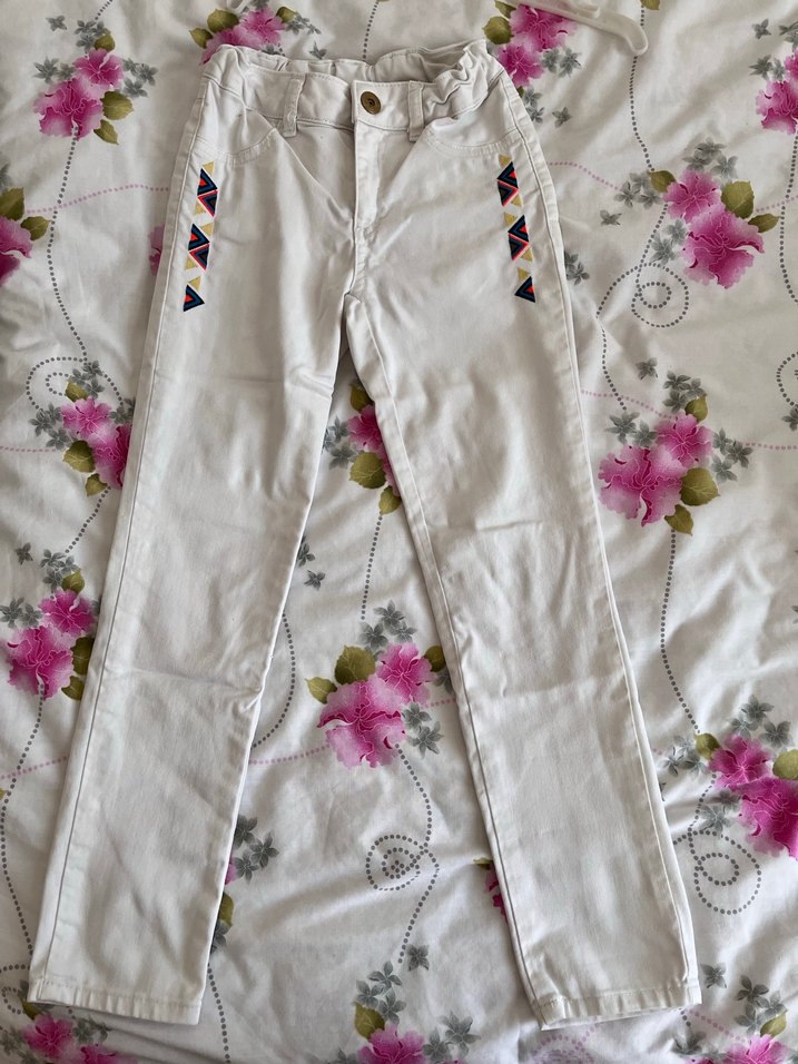 Nakışlı Beyaz Bohem kız çocuk Pantolon