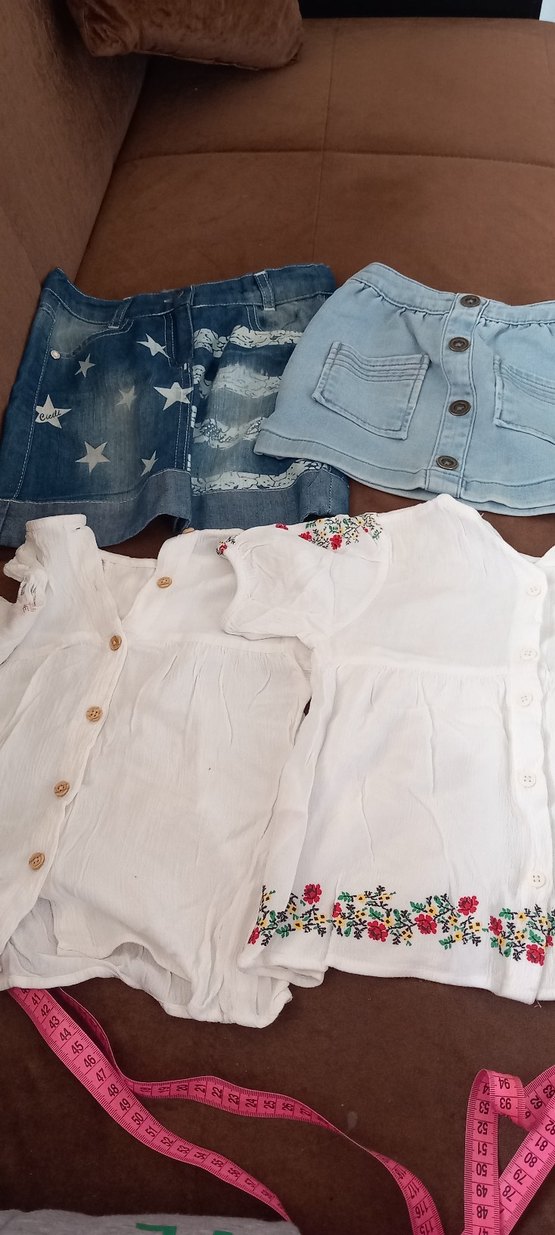 Düğmeli, bol kesim beyaz denim şort, renkli nakış detaylarıyla bohem tarzı sunar. gömlek etek ikili yada toplu alım yapabilirsiniz ikili fiyatıdır 2 3 yaşa uyumludur