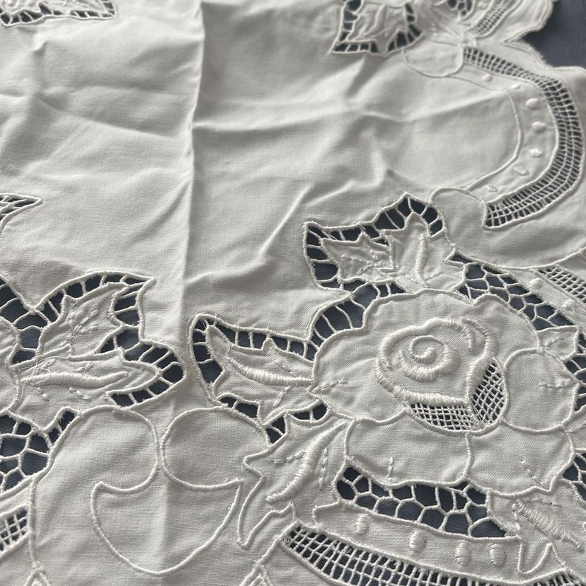 Bohem tarzda, gri detaylı, çiçek desenli nakışlı beyaz örtü