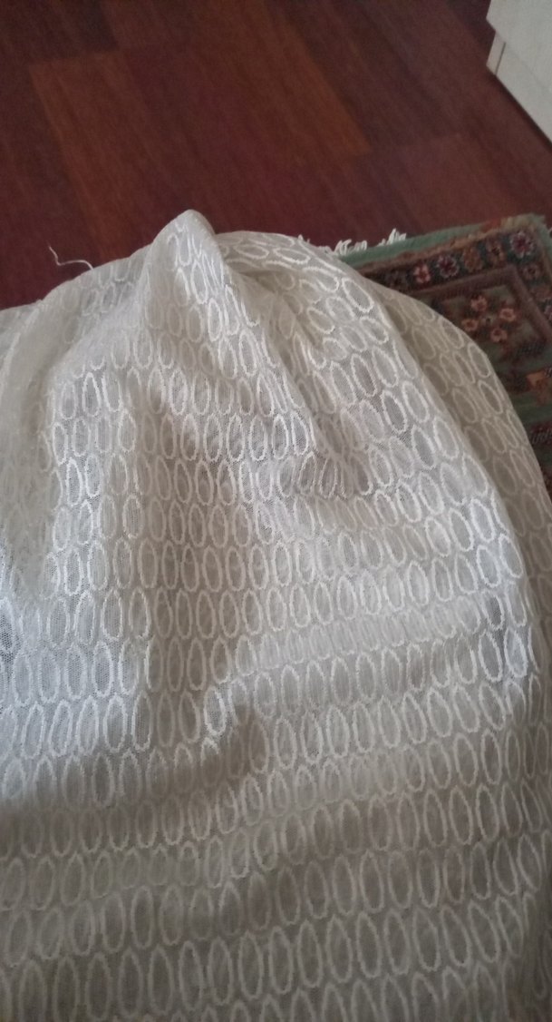 Bohem tarzda, yumuşak gri tonlarda, oval nakışlı beyaz perdeler kisa perde