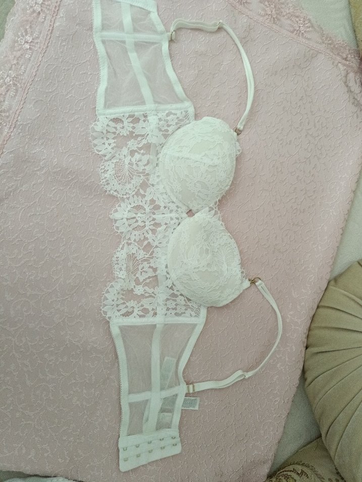 Nakışlı detaylara sahip beyaz sütyen, vintage bohem tarzını yansıtıyor ve zarif ve ince tasarımlı.