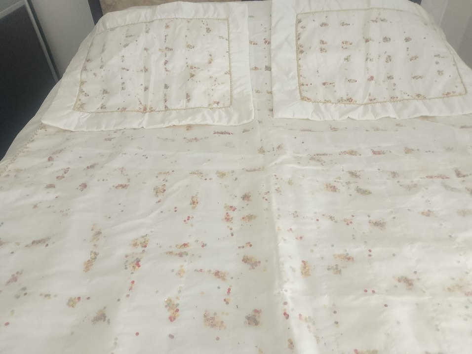 Nakışlı Beyaz boncuklu Pastel Yatak Örtüsü