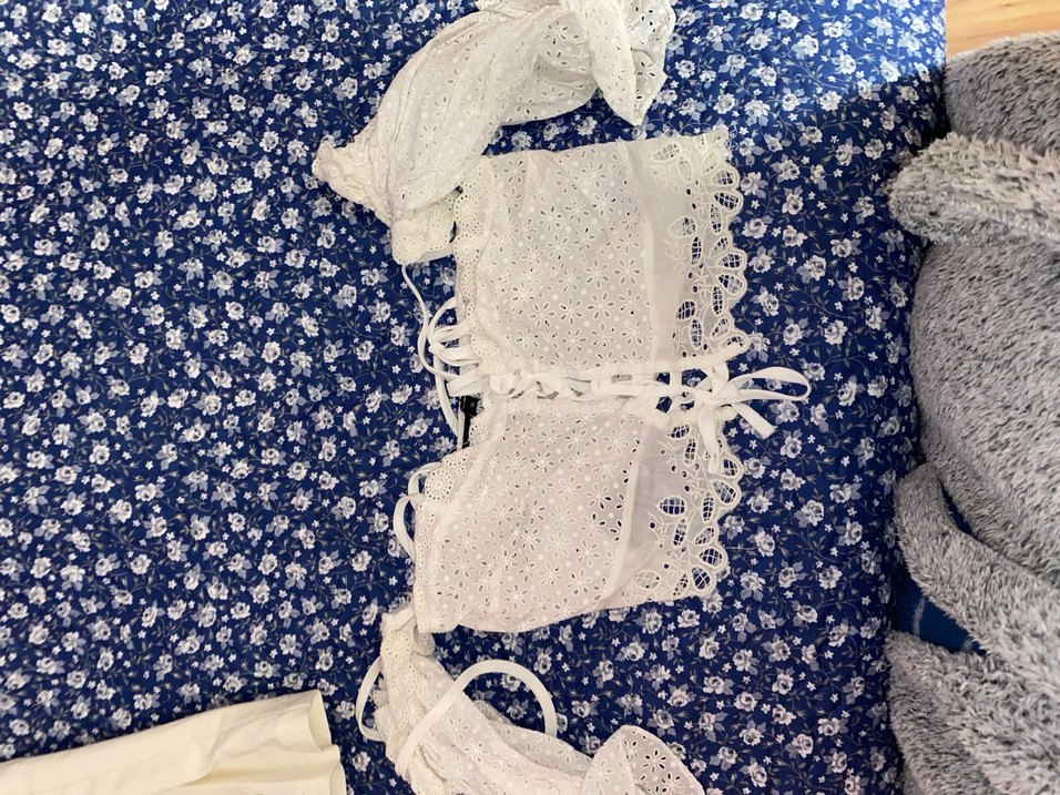 Nakışlı detaylara sahip beyaz büstiyer, midi boy ve vücuda oturan kesimi ile şık ve zarif bir görünüm sunar. Yanlarda bağcık detayı vardır.