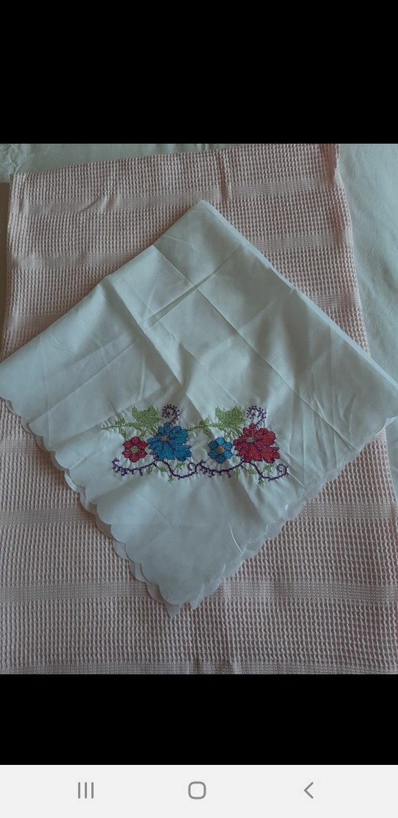 Beyaz kanaviçe nakışlı bohça çeyizlik hiç kullanılmadı masa örtüsü olarak da kullanılabilir pastel renkli çiçek nakışı ve dalgalı kenar detayıyla zarif bir görünüm sunar. marka temsilidir