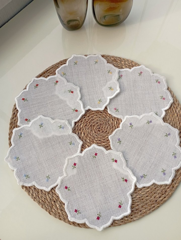 Nakışlı Beyaz Çiçek Desenli Peçete Seti