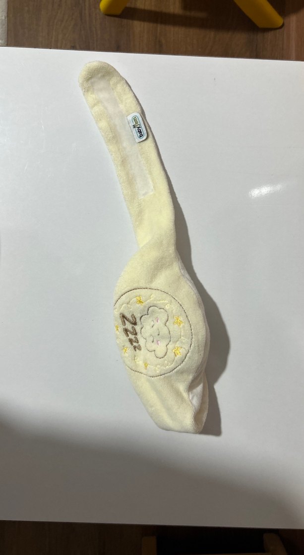 Nakışlı bulut ve yıldız desenli, yumuşak ve sıcak beyaz çocuk uyku bandı. Ayarlanabilir cırt cırtlı bant ile rahat kullanım sağlar.