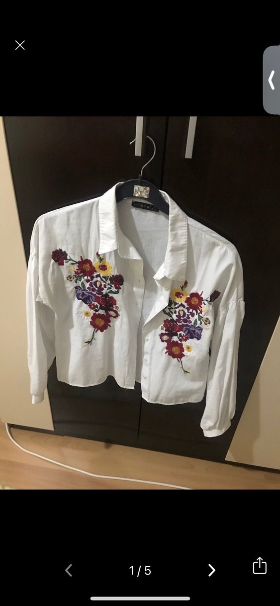 Nakışlı Beyaz Düğmeli Kadın Gömlek