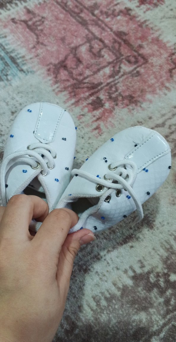 Nakışlı Beyaz Erkek Bebek İlk Adım Ayakkabısı
